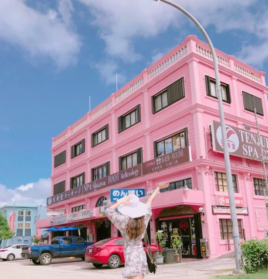 사랑의 절벽을 방문한 후에는 괌 트레이드 센터로 이동해 인상적인 핑크 벽을 배경으로 사진을 찍었습니다. 괌에서 인스타그램에 올릴만한 핫스팟으로 유명한 이곳은 여행 중 꼭 들러봐야 할 장소입니다.