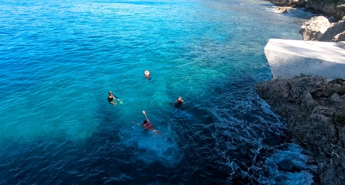 이곳에서는 절벽에서 뛰어내리는 스릴 만점의 다이빙 체험도 할 수 있었어요. 다이빙이 조금 무섭다면 옆에 있는 사다리를 이용할 수 있어 걱정 없이 스노쿨링을 즐기실 수 있답니다. 때묻지 않은 자연 속에서 깨끗한 바닷속을 즐기며 정말 즐거운 시간을 보냈어요.