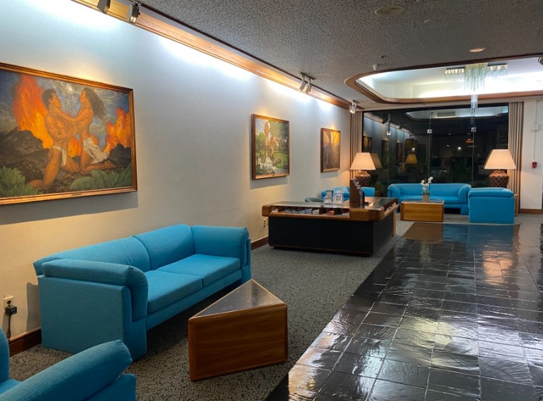 일리마호텔의 로비는 깔끔하고 정돈되어 있습니다. 그러나 하와이의 많은 호텔들이 오래된 건물들이 많기 때문에 전체적으로 조금은 칙칙한 느낌이 들 수 있습니다.
