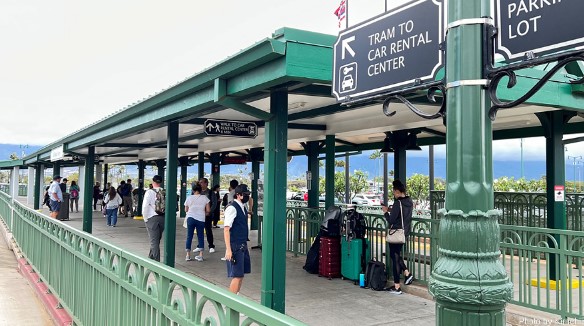 마우이 카훌루이 공항에서는 렌터카 회사들이 개별적으로 셔틀버스를 운영하는 것이 아니라, 통합 렌터카 센터로 연결되는 트램 서비스를 제공합니다.