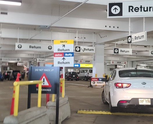 차량 반납은 반납 표지판을 따라 주차장으로 올라가서 진행하면 됩니다. 차량 키는 차 안에 두고, 짐만 꺼내서 내리면 나머지는 직원들이 처리해줍니다. 차량 반납 전에는 기름을 채우는 것이 필수입니다.