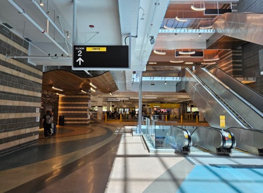 렌트카 빌딩에 도착하면 길을 건너 에스컬레이터를 타고 올라가면 됩니다. 에스컬레이터를 올라오면 바로 허츠 렌터카가 보입니다. 허츠 외의 렌트카 회사들은 허츠 입구 옆쪽에 있는 에스컬레이터를 타고 한 층 더 올라가야 합니다.