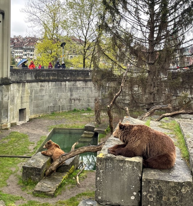베른에서는 유명한 곰 공원에서 곰을 볼 수 있었는데요, 보통 잘 안 나온다고 하지만, 운이 좋게도 곰이 물놀이하는 장면을 볼 수 있었습니다.