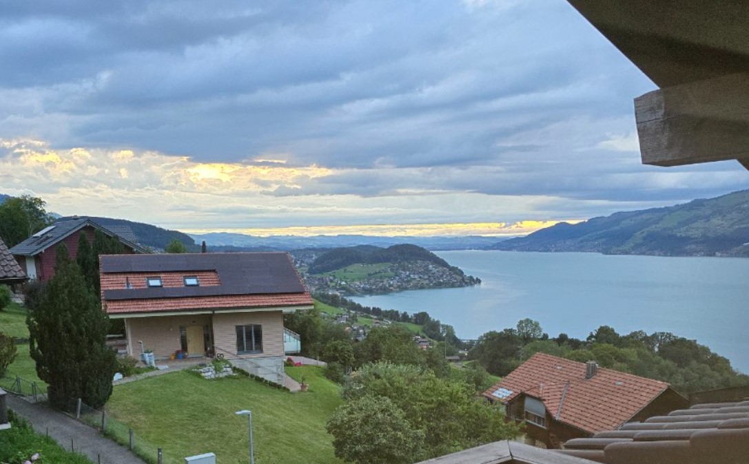저녁에 인터라켄의 숙소로 돌아왔는데, 숙소에서 보이는 튠 호수의 뷰가 정말 최고였어요. 현실감이 느껴지지 않을 정도로 멋진 풍경을 매일 아침 조식당에서 감상할 수 있었답니다.