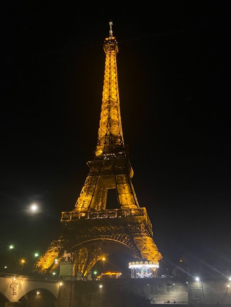 에펠탑은 1887년에 세워진 이후로 파리의 상징으로 자리잡았죠. 300미터가 넘는 높이에서 파리 전경을 바라보면 감탄이 절로 나옵니다. 탑 아래에서 사진을 찍으며 그 웅장함을 느낄 수 있었고, 특히 조명에 비친 모습은 정말 환상적이었어요. 에펠탑을 배경으로 많은 사람들과 함께 기념사진을 찍으며 첫 날을 마무리했습니다.