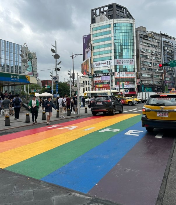 행복당에서 밀크티를 마시며 거리를 걷다 보면 시먼딩의 인기 포토존인 무지개로드를 만나볼 수 있습니다. Rainbow Road는 현지인들과 관광객들이 모두 사랑하는 포토 스팟으로, 무지개색이 선명하게 그려진 거리는 사진 찍기 좋은 장소입니다.