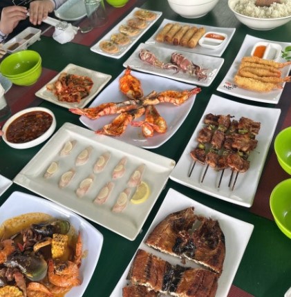 마지막으로는 필리핀식 뷔페로 든든하게 배를 채우며 여행을 마무리했습니다. 푸짐한 음식들과 함께하는 마지막 식사는 이 여행을 완벽하게 정리해주었어요.