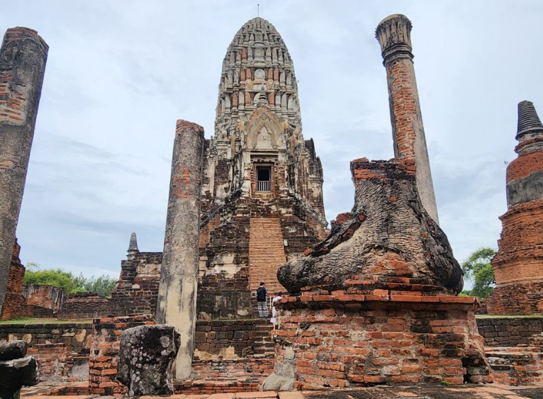 왓 마하탓 맞은편에 위치한 왓 랏차부라나는 1424년에 건립된 사원으로, 한가운데 우뚝 솟은 중앙탑이 매우 인상적입니다. 이 사원은 왕족의 장례식과 관련된 역사를 가지고 있으며, 건축적인 아름다움으로도 유명합니다.