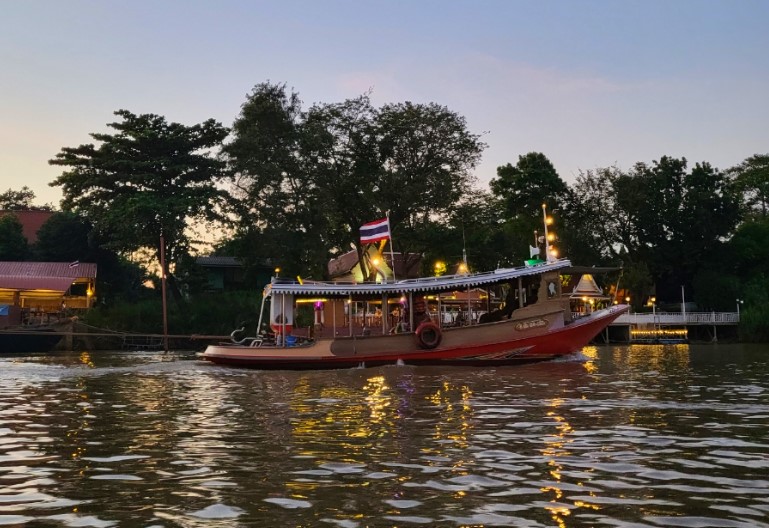 아유타야 선셋 투어의 하이라이트는 왓 차이와타나람에서 일몰을 감상하는 것입니다. 이곳은 배를 타고 들어가야 하는데, 배가 출발할 때마다 물 위에서 흔들리는 느낌이 스릴 넘쳤습니다.