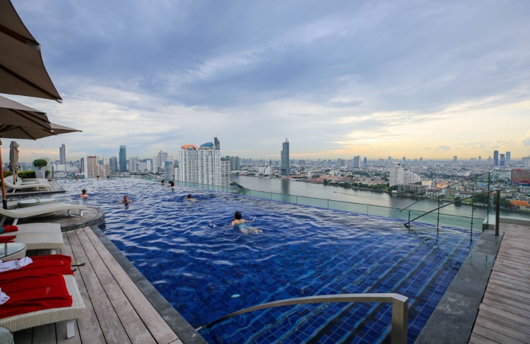 아바니 리버사이드 방콕 호텔에서 가장 기대했던 곳 중 하나가 바로 루프탑 수영장이었어요. 26층에 위치한 이 수영장은 호텔의 하이라이트라고 할 수 있습니다. 수영장에서 내려다보는 방콕의 전경은 그야말로 압권이었어요.