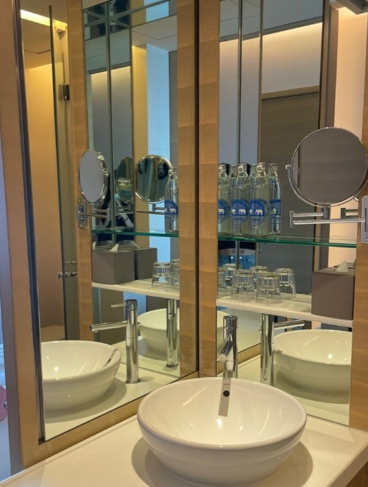 욕실 역시 매우 깔끔하고 고급스러웠습니다. 미닫이식 창문이 설치되어 있어, 샤워하면서도 창밖의 풍경을 즐길 수 있었어요. 호텔에서 제공하는 어메니티도 훌륭했는데, 특히 페퍼민트 향이 나는 샴푸는 개인적으로 매우 만족스러웠습니다.