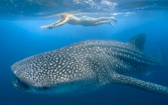 고래상어는 무척 온순한 성격의 해양 생물로, 오슬롭에서는 이 거대한 고래상어와 함께 수영을 하거나 스노클링을 할 수 있습니다.