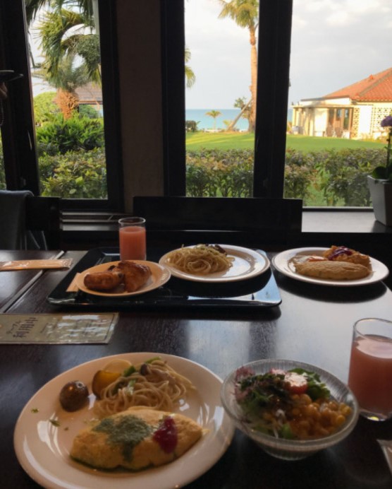 숙소로 돌아와 리조트 내 레스토랑에서 저녁을 먹으며 하루를 마무리합니다. 미야코지마 도큐 호텔 앤 리조트와 같은 고급 리조트에는 다양한 레스토랑 옵션이 있으니, 호텔에서 편하게 식사하는 것도 좋은 선택입니다.