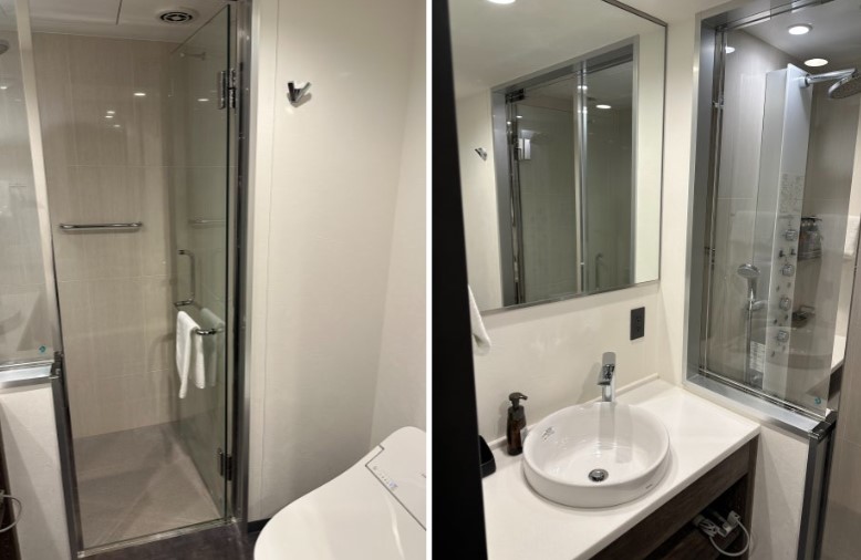 더 비 긴자 호텔의 가장 큰 장점 중 하나는 바로 욕실입니다. 신상 호텔인 만큼 욕실은 매우 깨끗하고, 수압이 강해 매일 여행으로 지친 몸을 푸는 데 아주 유용했습니다.