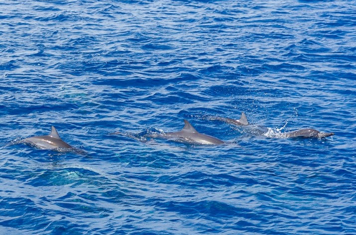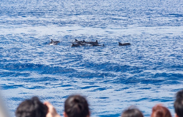 보트를 타고 한참을 달리다 보니 어느새 돌고래 포인트에 도착했어요. 돌고래들이 물 위로 뛰어오르며 펼치는 점핑쇼는 정말 환상적이었어요. 다른 보트들도 같은 포인트에 있었지만, 우리 배는 유독 돌고래가 많이 보이는 곳에 머물렀답니다.