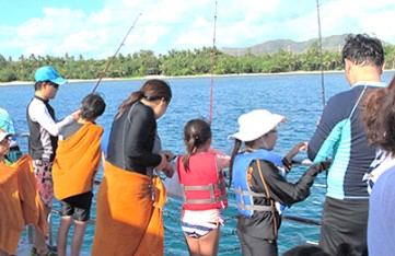 스노클링 후에는 열대어 낚시를 즐겼어요. 괌 바다는 정말 물고기가 많아서 낚싯줄을 던지기만 해도 바로 물고기들이 물었어요.