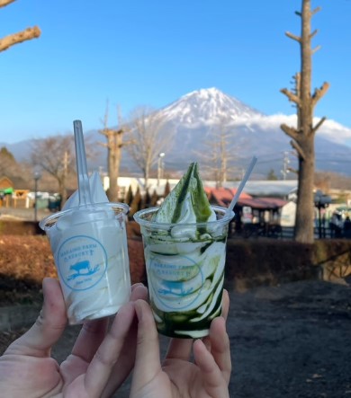 목장에서의 시간을 마무리하면서, 신선한 우유로 만든 아이스크림을 먹었어요. 후지산을 배경으로 먹는 아이스크림은 정말 최고였어요. 목장에서는 신선한 우유로 만든 요거트도 팔고, 다양한 현지 농산물도 판매하고 있어서 기념품으로 사오기 딱 좋았답니다. 저는 요거트와 시즈오카 특산물인 귤도 한 상자 사왔어요.