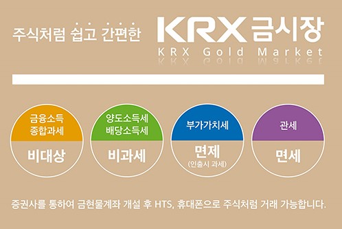 KRX를 통해 금을 매입하는 방법입니다. 품질 좋은 금을 소액으로 구매할 수 있고, 세금 혜택도 있습니다. 다만 실시간으로 금시세가 변하기 때문에 주의가 필요합니다.