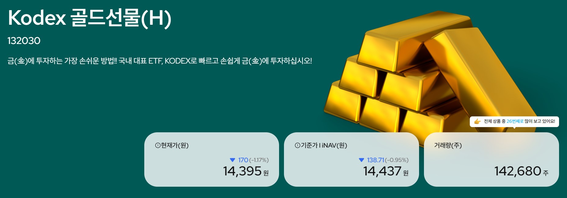 | KRX 금투자 금 ETF 투자 방법 장단점 안내 (0) | 2024.07.16 |