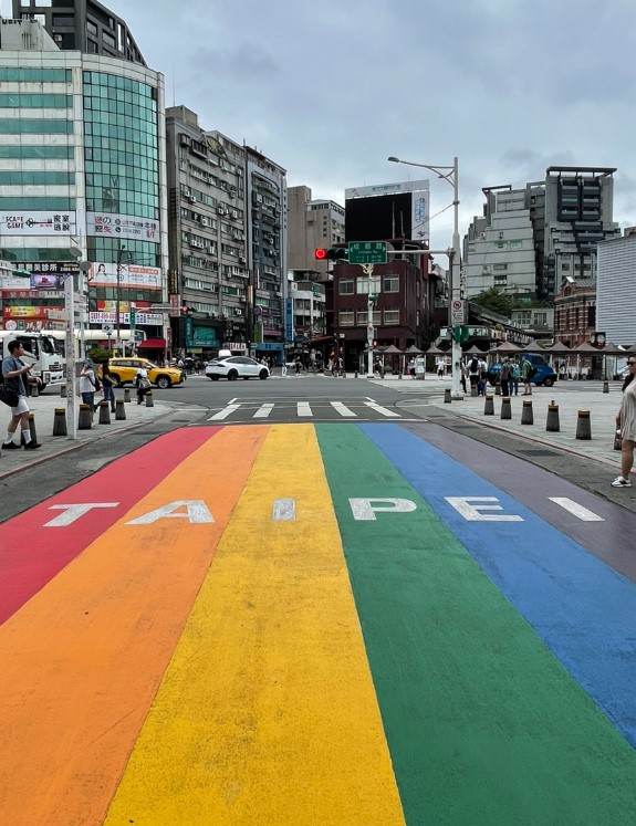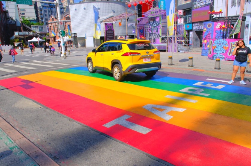시먼딩 여행을 시작할 때는 시먼딩역 6번 출구에서 나오면 좋습니다. 바로 앞에 유명한 레인보우 포토존이 있거든요. 이곳은 바닥이 무지개 색깔로 칠해져 있어서 인증샷을 찍기 좋은 장소입니다. 무지개 색 바닥은 대만을 상징하는 색깔은 아니지만, 이곳에서 사진을 찍으면 대만 여행의 첫 발을 내딛는 느낌을 줄 수 있어요.