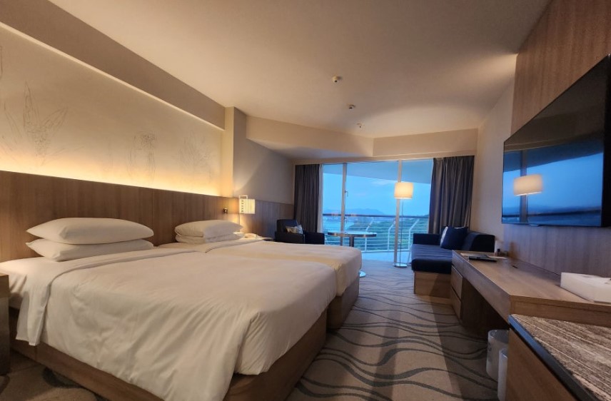 오키나와 르네상스 리조트에서 저희 가족이 묵었던 방은 디럭스 트윈 비치뷰 룸이었습니다. 이 방은 이름 그대로 넓고 고급스러운 분위기 속에서, 바다를 바라볼 수 있는 탁 트인 전망을 제공해주었습니다. 방에 들어서자마자 발코니를 통해 보이는 환상적인 오키나와 바다가 첫눈에 들어왔고, 이곳에서 보내는 시간이 정말 특별할 것 같다는 기대감을 주었습니다.