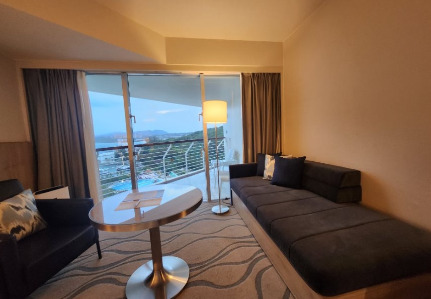 방 안에서 가장 눈에 띄었던 곳은 역시 발코니였습니다. 발코니에 나서면 바로 앞에 펼쳐진 푸른 바다가 한눈에 들어옵니다. 저희는 저녁에 리조트 주변을 산책한 후 발코니에서 간단하게 차를 마시며 하루를 마무리했어요.