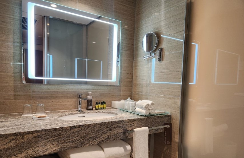 욕실도 넓고 깨끗했으며, 특히 따뜻한 물이 잘 나와서 피곤한 몸을 풀어주기에 좋았습니다. 샤워 부스와 욕조가 따로 분리되어 있어, 목욕을 좋아하는 아이들이 물놀이처럼 욕조에서 놀 수 있었고, 어른들은 샤워를 빠르게 마칠 수 있어 편리했어요. 특히 아이들과 함께 여행하는 가족들에게는 이런 점이 굉장히 실용적입니다.