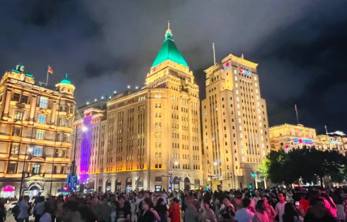 마지막으로, 상하이 여행에서 가장 기대했던 와이탄으로 이동했습니다. 와이탄에서는 유럽풍 건물들과 동방명주가 어우러진 야경을 감상할 수 있는데, 이곳의 야경은 정말 말로 표현할 수 없을 정도로 아름다웠습니다.