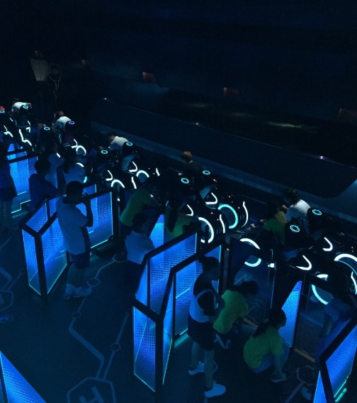 트론은 상하이 디즈니랜드에서 가장 유명한 롤러코스터로, 빠른 속도와 화려한 그래픽으로 스릴을 만끽할 수 있습니다.