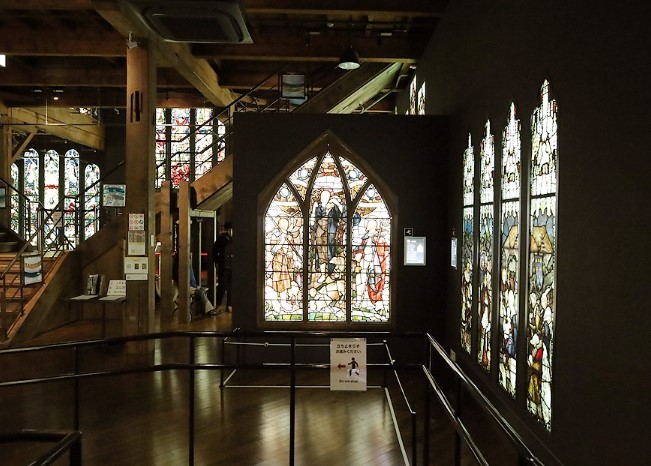 이곳은 다양한 스테인글라스 작품을 감상할 수 있는 공간으로, 일본에서는 사진 촬영이 허락되지 않는 경우가 많지만 이곳은 예외적으로 촬영이 가능했습니다. 아름다운 작품들을 배경으로 몇 장의 사진을 남길 수 있어 좋았습니다.