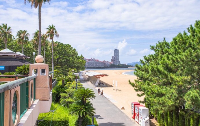 그 후 모모치 해변으로 나가면 여유롭게 해변을 거닐 수 있습니다. 해변을 따라 걷거나 조용히 앉아 바다의 파도 소리를 들으며 힐링할 수 있는 공간이에요.