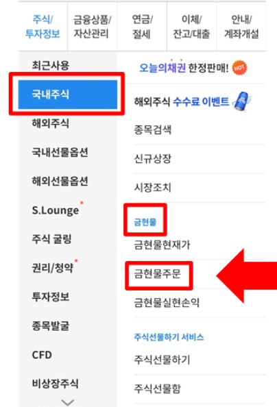 3. 금현물주문: 금현물주문 메뉴를 선택하여 금을 주식처럼 거래할 수 있습니다.