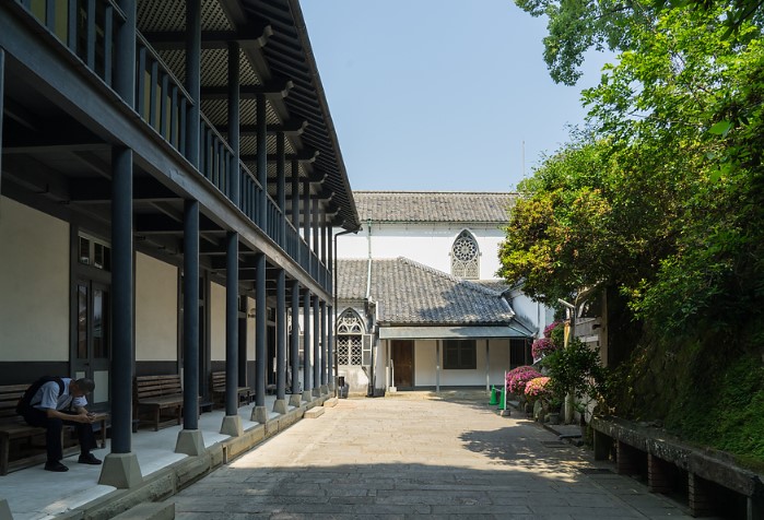 여행 첫 번째 목적지는 나가사키에서 가장 유명한 건축물 중 하나인 오우라 천주당이었어요. 일본 최초의 고딕 양식 성당으로, 1865년에 지어졌고, 천주교의 금교령이 내려진 시기에도 비밀리에 신앙을 지키려 했던 일본인 ‘잠복 그리스도인’을 기리는 장소로도 유명합니다.