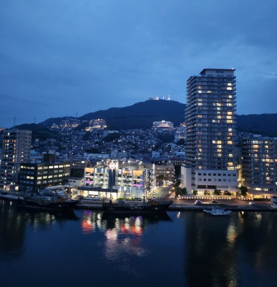 마지막으로 들른 곳은 나가사키 현청 전망대였습니다. 나가사키의 전경을 한눈에 내려다볼 수 있는 전망대는 특히 저녁이 되면 환상적인 야경을 감상할 수 있는 명소로 유명합니다. 저는 해질 무렵에 방문해서 나가사키 항구와 도시의 불빛이 켜지기 시작하는 순간을 감상할 수 있었어요.