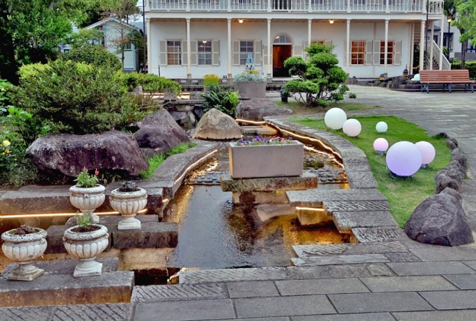 정원을 천천히 산책하다 보면 서양식 건축물과 일본의 전통적인 요소가 조화를 이루는 것을 볼 수 있어, 두 문화가 나란히 존재하는 모습이 흥미로웠어요.