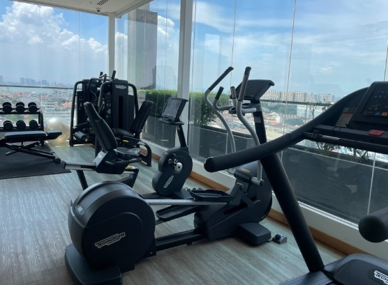 수영장 옆에 위치한 헬스장도 인상적이었습니다. 헬스장은 10시까지 운영되어, 운동하면서 아름다운 뷰를 감상할 수 있는 기회를 제공합니다. 간단한 근력 기구와 런닝머신, 아령까지 모두 구비되어 있어 다양한 운동을 즐길 수 있었습니다.