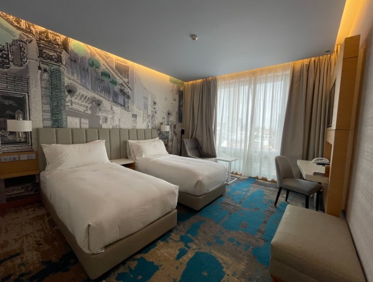 제가 선택한 방은 트윈베드 룸이었는데 시설이 매우 깨끗하고 현대적이었습니다. 가격은 6만 원 후반으로, 페낭 조지타운의 다른 숙소들과 비교할 때 꽤 저렴한 편이었어요. 방은 넓고 쾌적하며, 호텔 컨디션이 아주 좋았습니다. 방의 내부는 심플하면서도 세련된 디자인으로 꾸며져 있어 휴식을 취하기에 완벽한 공간이었습니다.