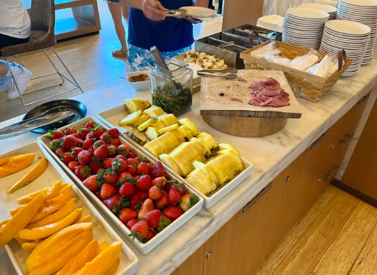 하와이 하얏트 리젠시의 또 다른 매력 중 하나는 뷔페식 조식입니다. 코로나19 이후로 해외의 많은 호텔들이 단품 메뉴로 아침 식사를 제공하는 경우가 많은데, 이곳은 여전히 뷔페식 조식을 제공하고 있어 여행객들에게 큰 장점으로 다가옵니다.