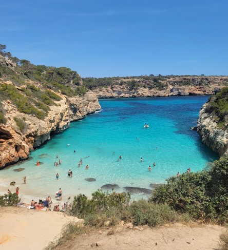 맛있는 점심을 먹고 나서는 마요르카에서 가장 아름다운 해변 중 하나로 꼽히는 칼로 데스 모로로 향했어요. 이곳은 마요르카 남동쪽에 위치한 작은 해변으로, 절벽과 푸른 바다의 조화가 절경을 이루는 곳이에요.