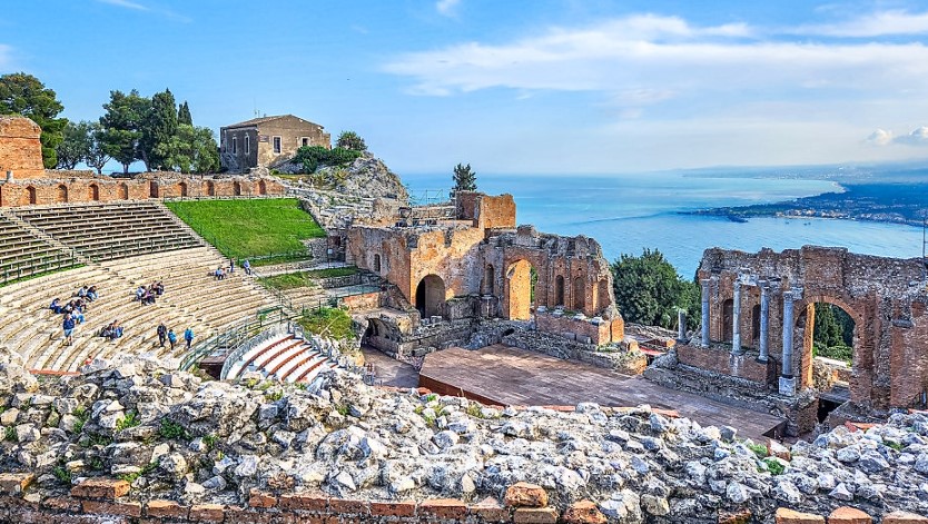 타오르미나의 가장 대표적인 명소는 그리스 극장입니다. 이 극장은 기원전 3세기에 지어졌으며, 고대 로마 시대에는 전차 경주와 같은 대규모 공연이 열렸다고 합니다.
