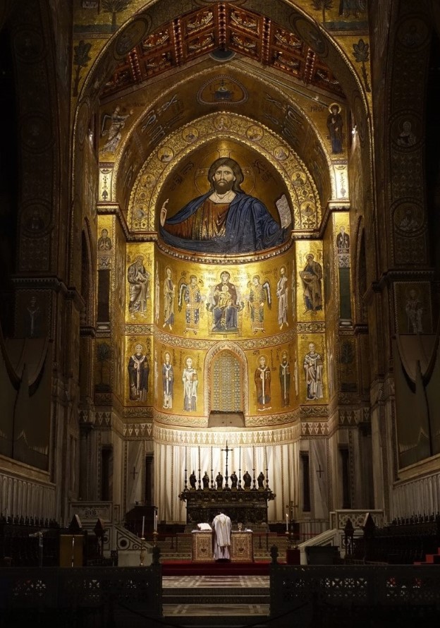 몬레알레 대성당은 그 유명세에 걸맞게 놀라운 모자이크 벽화로 유명합니다. 성당 내부로 들어가면 천장을 비롯해 벽면 곳곳에 그려진 성경 이야기가 눈길을 끕니다.