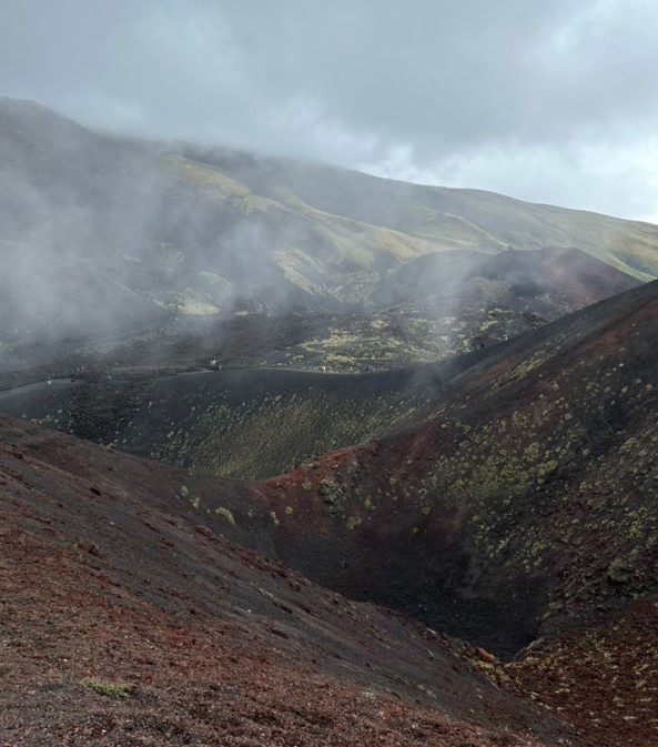 에트나 산을 오르는 트레킹 코스는 다양하지만, 저는 중급 난이도의 코스를 선택했습니다. 트레킹을 하면서 마주한 광활한 용암 지대는 마치 다른 행성에 온 듯한 기분을 들게 했습니다.