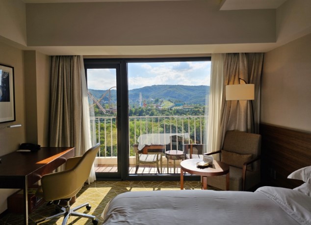 특히 아이들이 좋아했던 부분은 발코니에서 보이는 경주월드의 놀이기구들이었습니다.