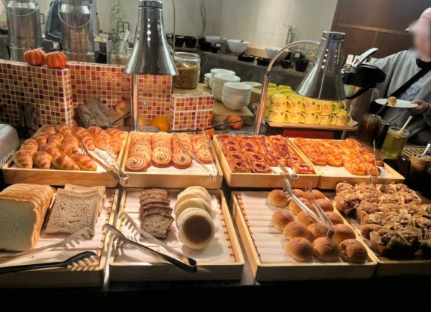 쌀국수부터 전복죽, 잡채 등 한식 메뉴가 준비되어 있었고, 다양한 종류의 , 머핀 같은 베이커리 메뉴도 풍부하게 제공되었습니다.