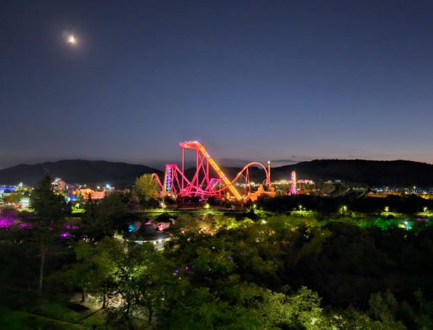 저녁이 되면 놀이기구들이 조명을 받아 더욱 멋진 풍경을 보여주었고, 아이들은 발코니에서 놀이공원을 바라보며 즐거워했습니다.