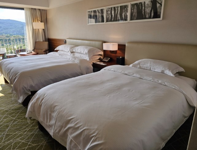 이번에 머물렀던 객실은 디럭스 패밀리 룸이었는데, 넉넉한 공간에 킹베드와 싱글베드가 있어 성인 3명 또는 성인 2명과 어린이 2명이 지내기에 충분한 구조였습니다. 침대는 정말 편안했고, 하루의 피로를 말끔히 씻어줄 정도로 푹신했습니다.