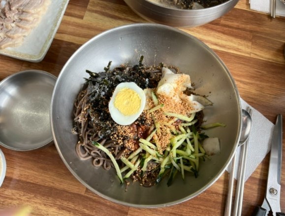 막국수는 비빔소스가 과일과 채소로 만들어져 달큰하면서도 매콤한 맛이 일품이었고, 물막국수는 깊고 진한 한우사골 육수 덕분에 시원하고 담백한 맛이 좋았습니다.