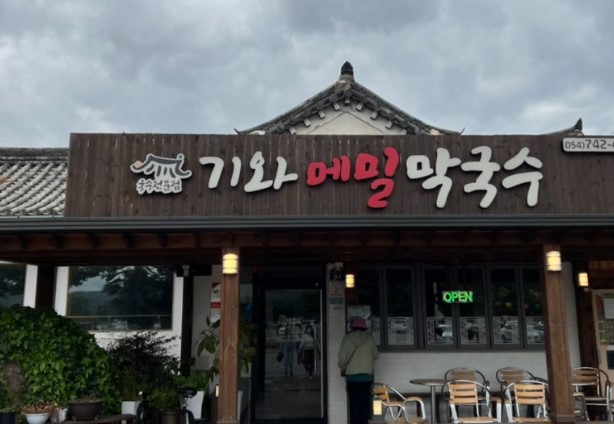2일차에는 경주의 전통 음식을 맛볼 수 있는 곳으로 향했습니다. 기와메밀막국수는 경주의 분황사 맞은편에 위치한 막국수 전문점으로, 한옥 외관이 매력적인 곳입니다.
