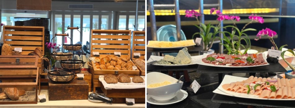 빵과 페이스트리 섹션에는 갓 구워 낸 따끈한 크루아상과 다양한 빵들이 준비되어 있었고, 잼과 버터가 함께 제공되어 입맛에 맞게 즐길 수 있었습니다.