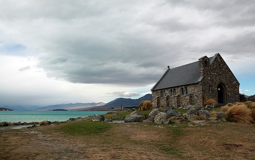 푸카키 호수 근처에는 테카포의 상징 중 하나인 선한 양치기의 교회가 자리잡고 있습니다.